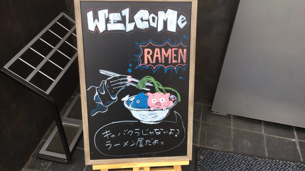 店の前にキャバクラじゃないよ、ラーメン屋だよと書いてあります。