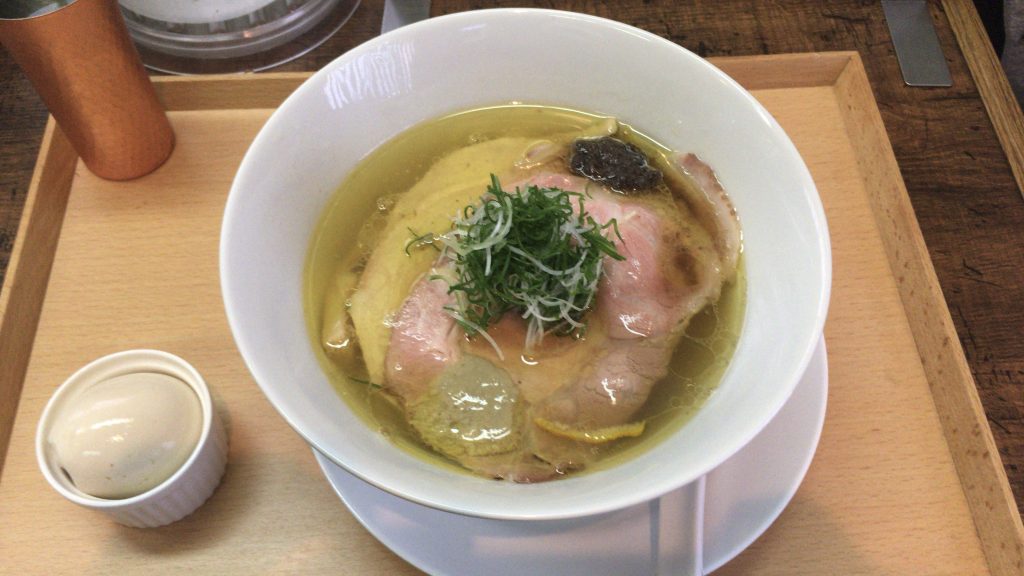 味玉焼豚塩蕎麦1600円を注文。