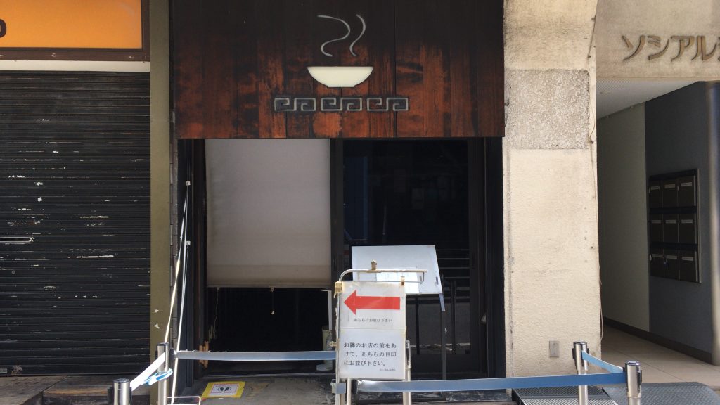 店の前にはロープが貼られていて隣の店の前で並ばないようにと注意書きがあります。