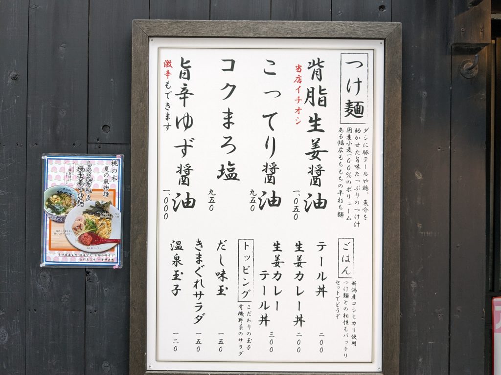 背脂生姜醤油味つけ麺1050円を注文。