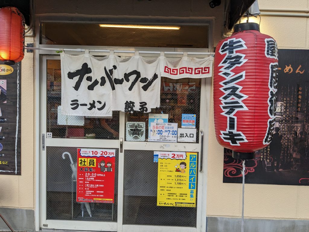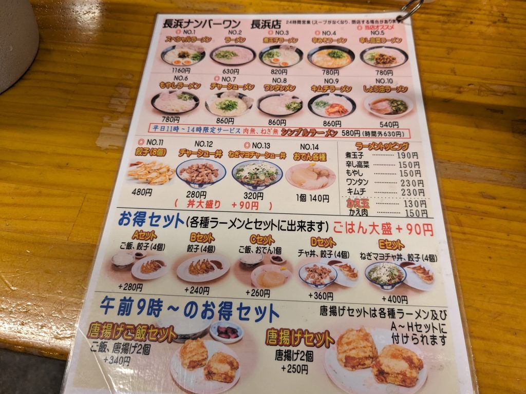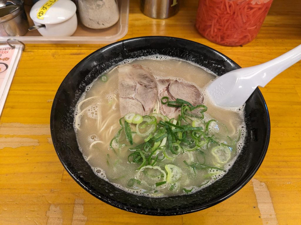 長浜ナンバーワン 長浜店 (福岡県福岡市中央区) スポンサーリンク スポンサーリンク ラーメン X Facebook はてブ Pocket LINE コピー 2023.10.242024.02.09 記事内に広告が含まれています。 博多遠征2店舗目 平日16:50着。 店内3名。 ラーメン630円カタメで頼みました。 2分で着丼。 はええ。 うん、これが長浜ラーメンか。 なるほどですね。 うん、うん、なるほど。 店員さんはとても丁寧でした。 ご馳走様でした。