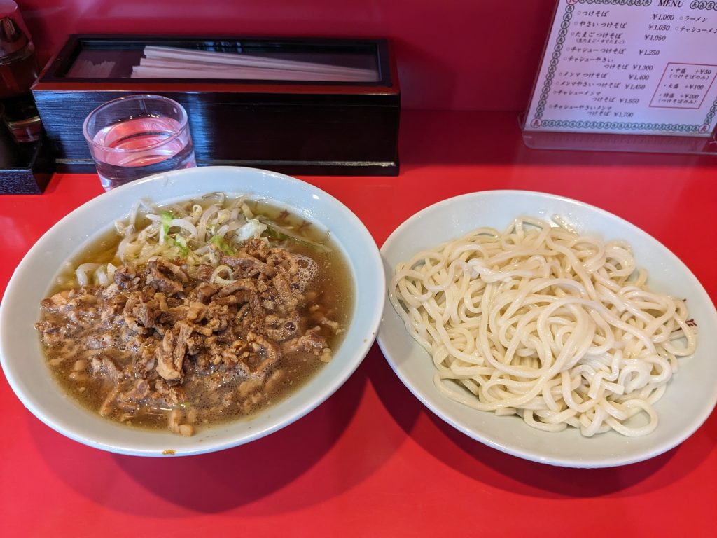 つけ汁に入ったやさいとチャーシューの量すごい。