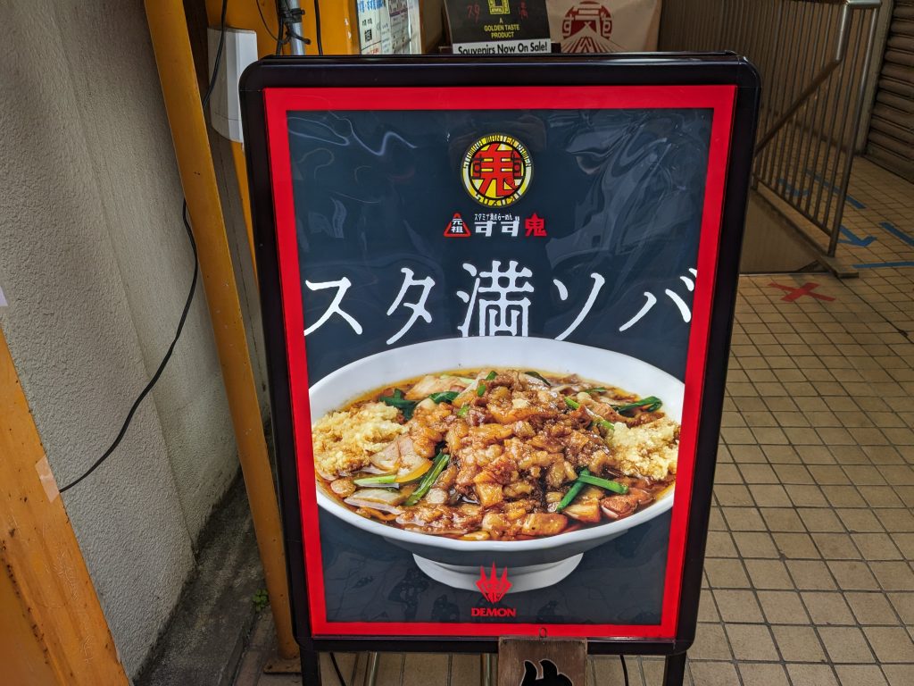 スタ満ソバにはライスと生卵が合うと書いてありました。