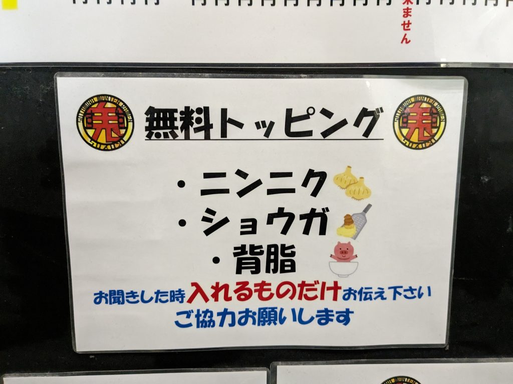 順番に無料トッピングをどうするか聞かれます。