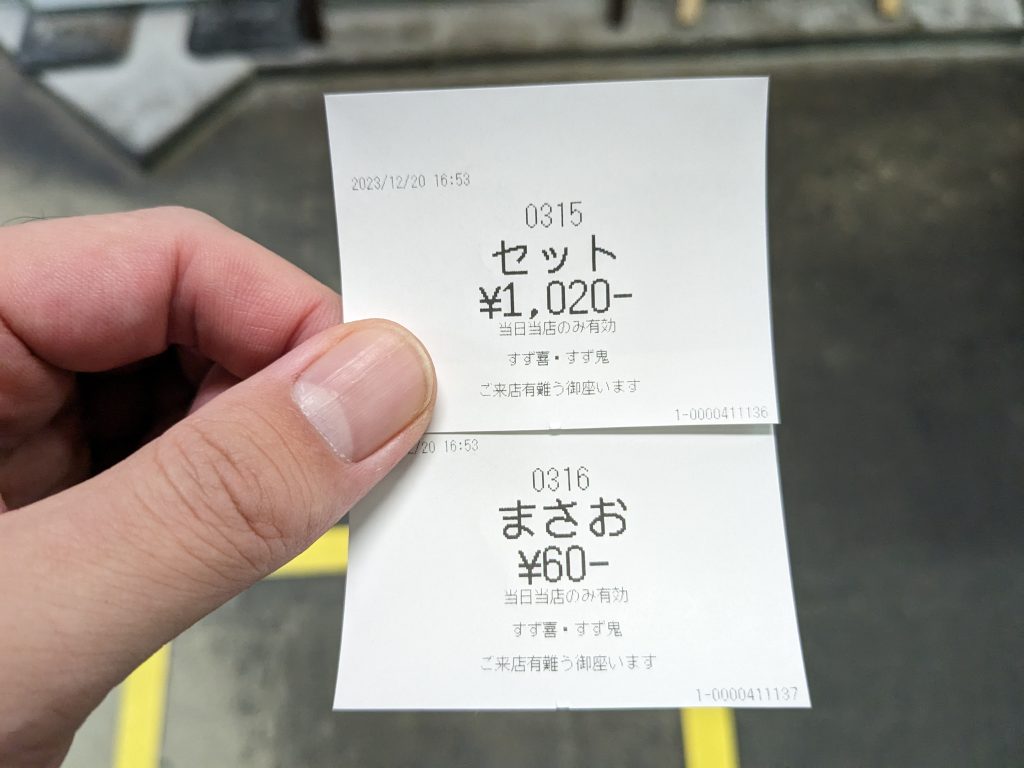 17:53に店員さんが食券を回収にきました。
