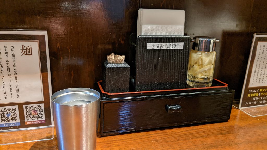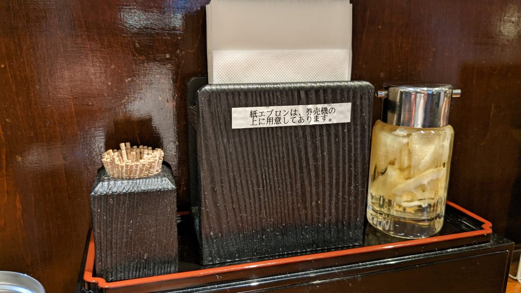 紙エプロンは券売機にあり、無料で使えます。