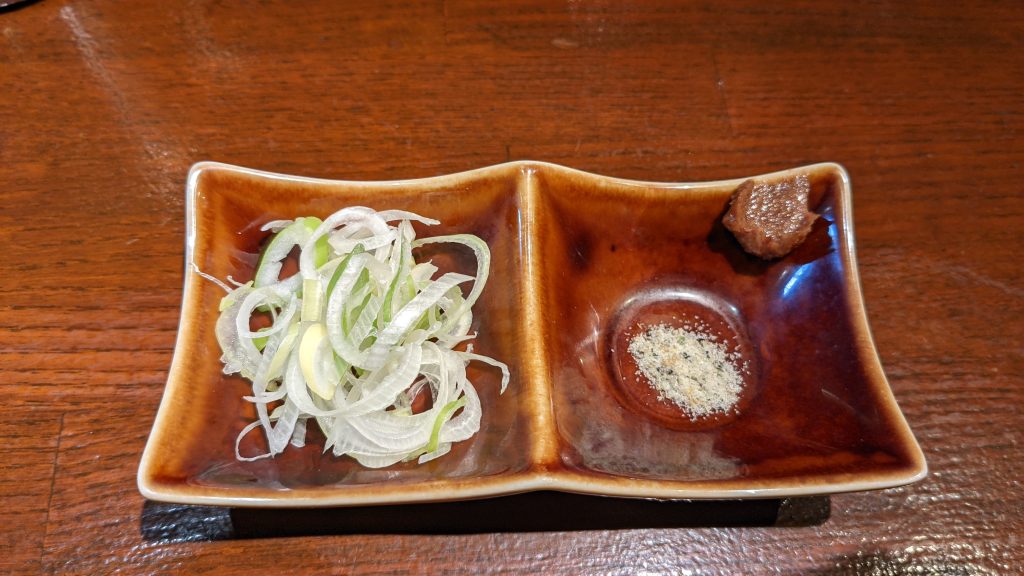 梅みたいなやつと塩は、麺に直接付けて食べる。