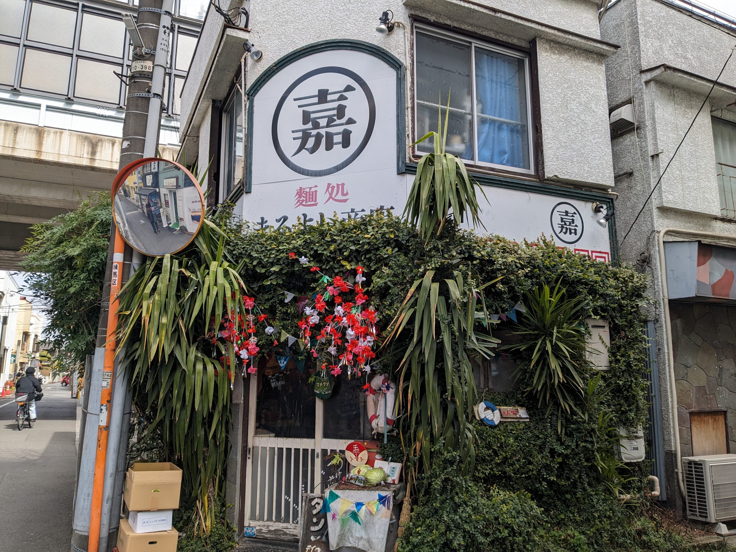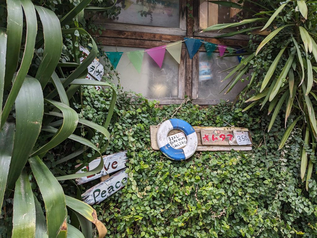 店舗は植物がいっぱいでラーメン屋に見えません。