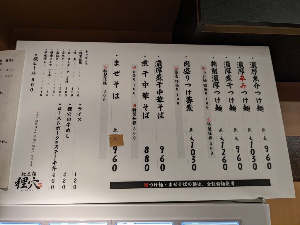 ここは並と大が同じ料金です。