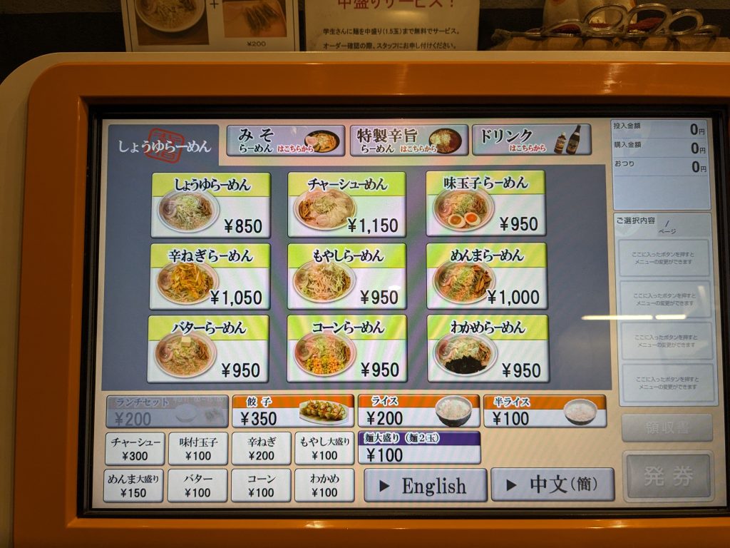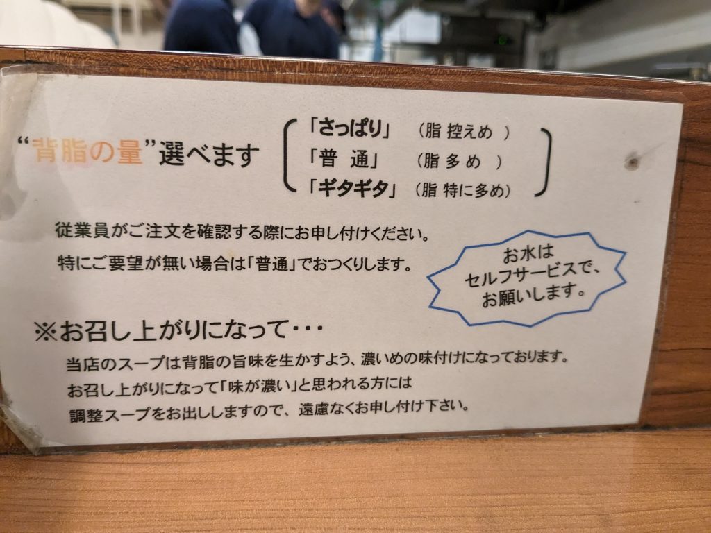 券売機で脂の量を決めれます。