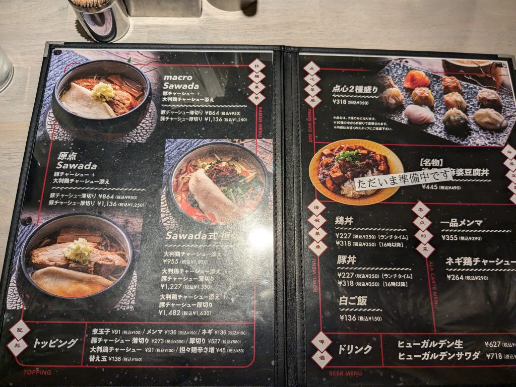 macroSawada豚チャーシュー薄切り 950円を注文。