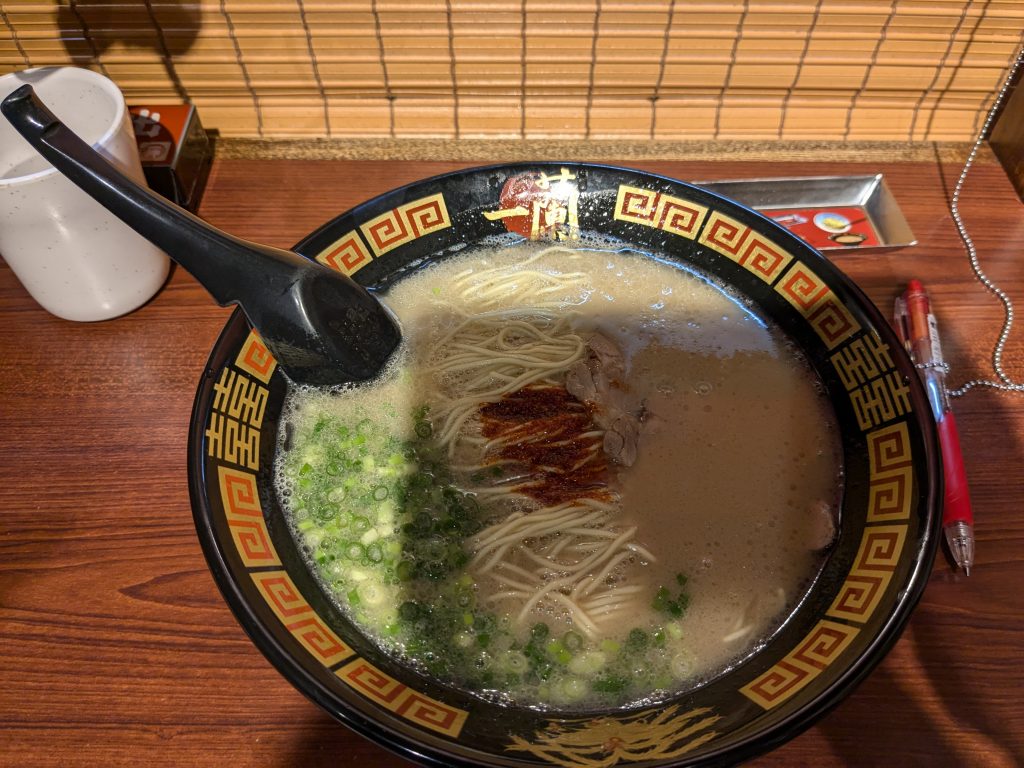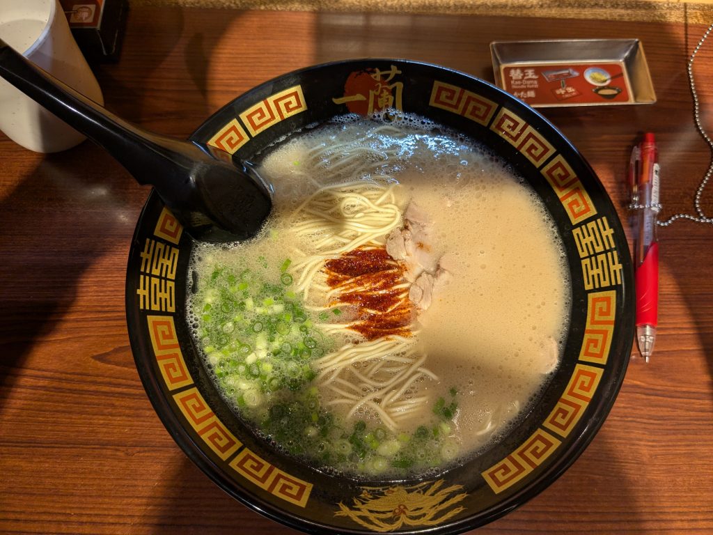 時間的にもまだどこも空いていないので24時間営業の一蘭へ。