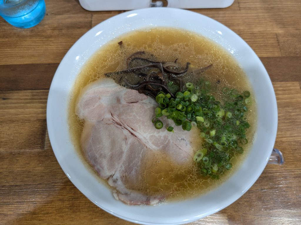 シンプルでチャーシュー、ネギ、きくらげが入っていました。