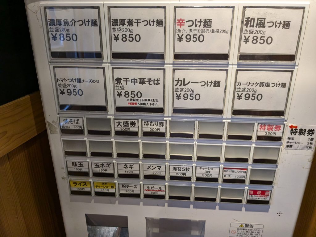 他のお客さんは魚介つけ麺、煮干しつけ麺、トマトつけ麺、油そばと色々頼んでました。