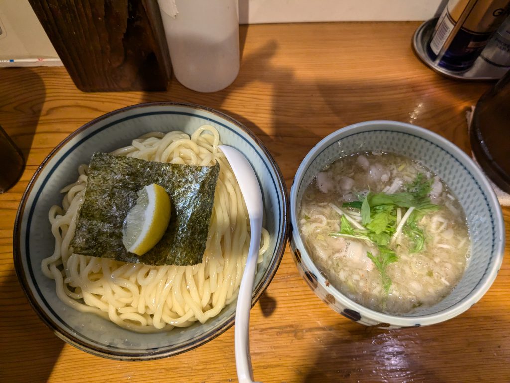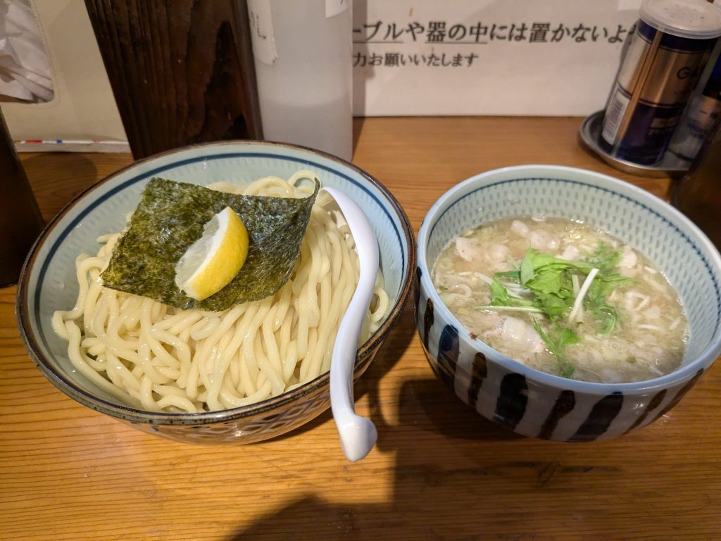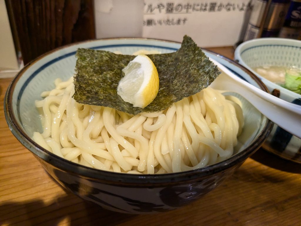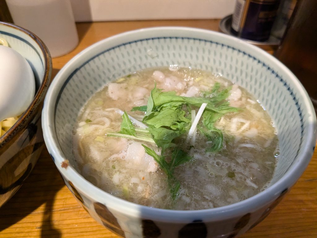 つけ汁にはゴロッとしたチャーシューと豚の薄切りが入っていました。