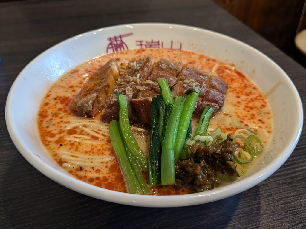 限定の 豚バラ唐揚げのせ担々麺1300円大盛100円を注文。