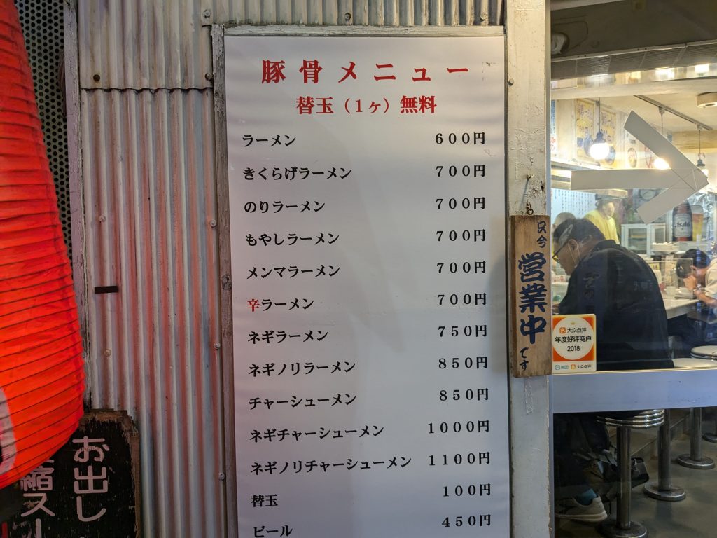 ラーメン 600円 昔は500円だったけど、どこも上がるな。