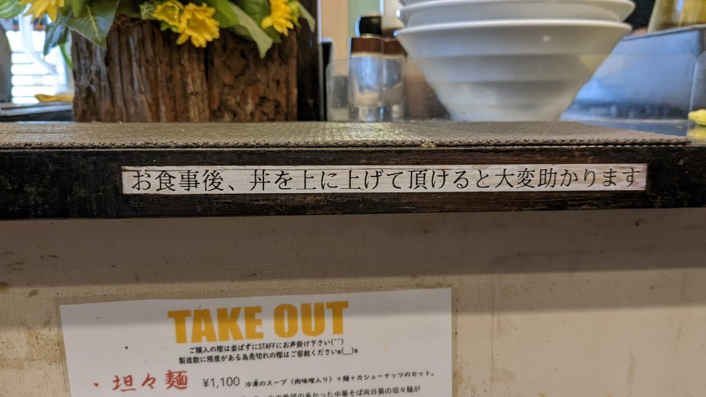 直ぐに店員さんから人数の確認と食券の回収があります。