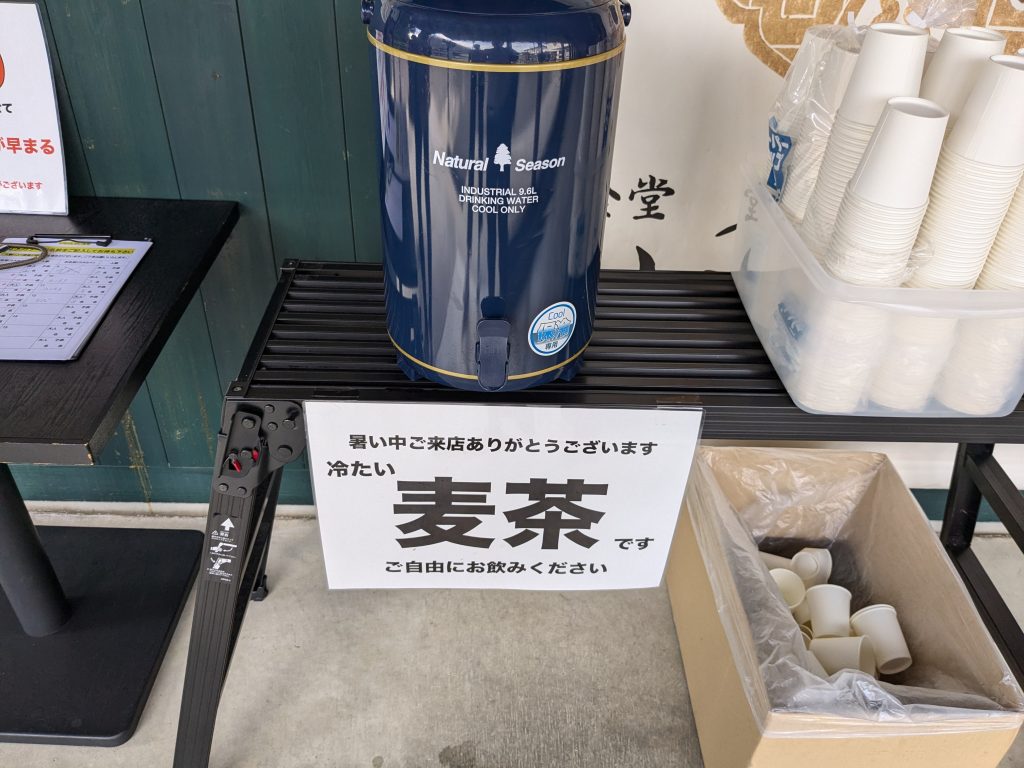 外に麦茶が置いてあるのいいですね、ありがたい。