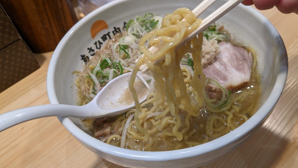 麺は黄色の縮れ麺。程よくコシがあってスープに合っていて美味しいです。