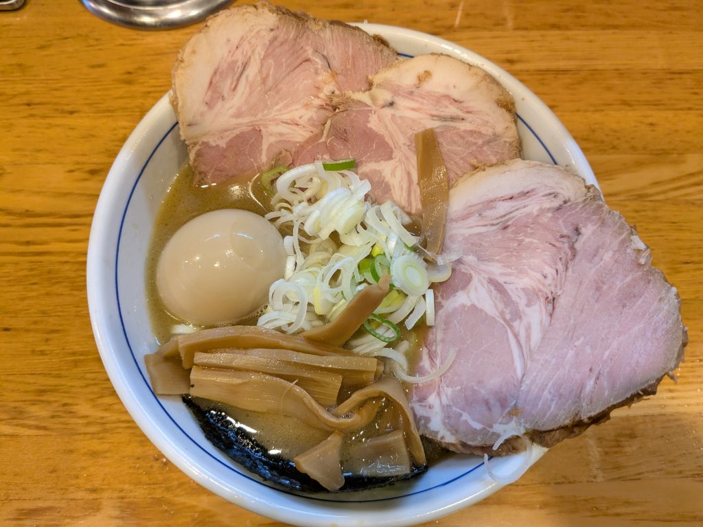 特製にするとこのデカいチャーシューが3〜4枚乗ってます。