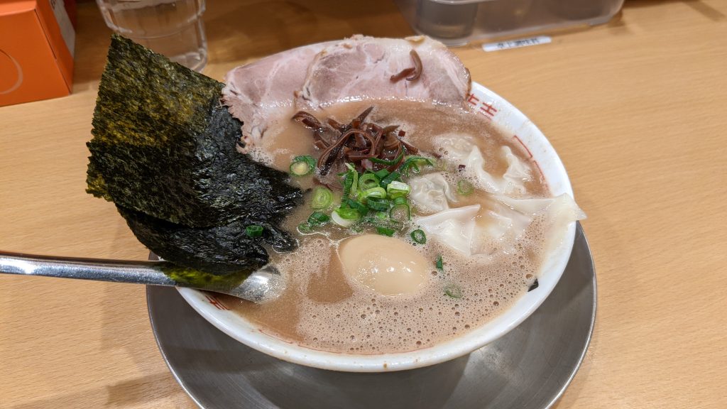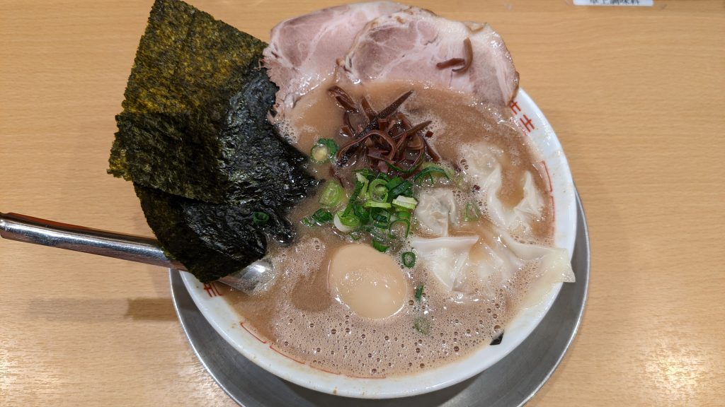 特製なのでワンタン、たまご、のり、チャーシュー1枚追加されてました。