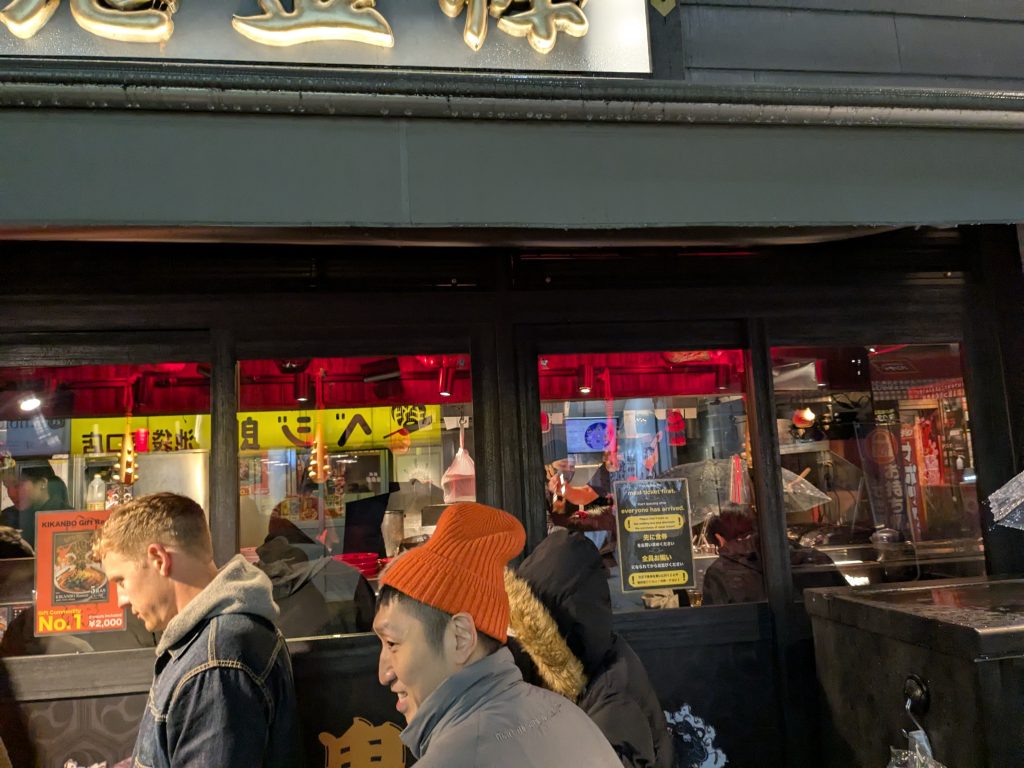 待ち10名。雪交じりの雨が降っていても並んでいます。