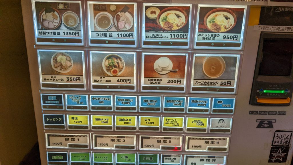 特製つけ麺1350円 大盛100円 をポチり。