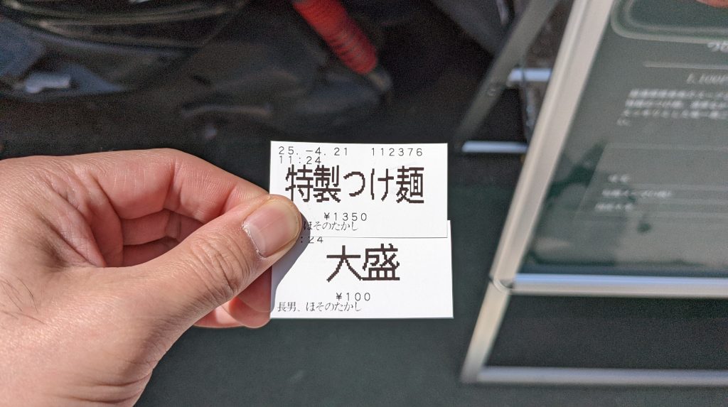 途中店員さんが出てきて食券回収されます。