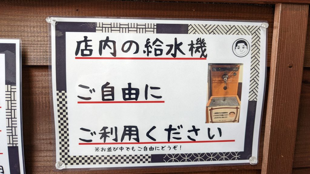 水は券売機の横にあります。セルフです。