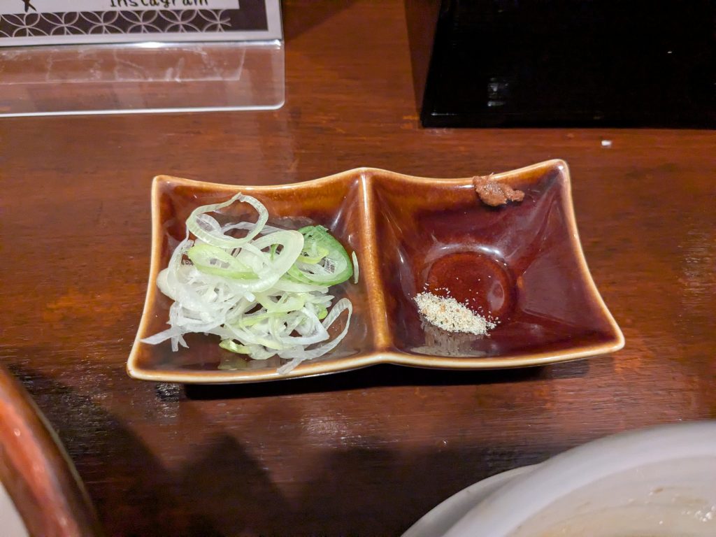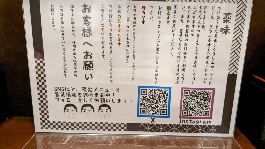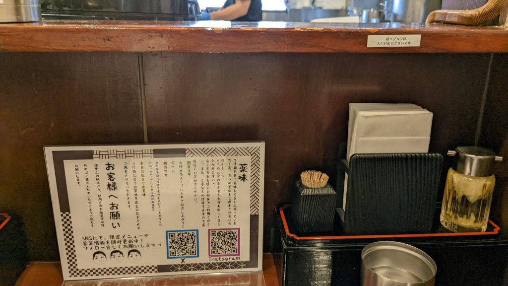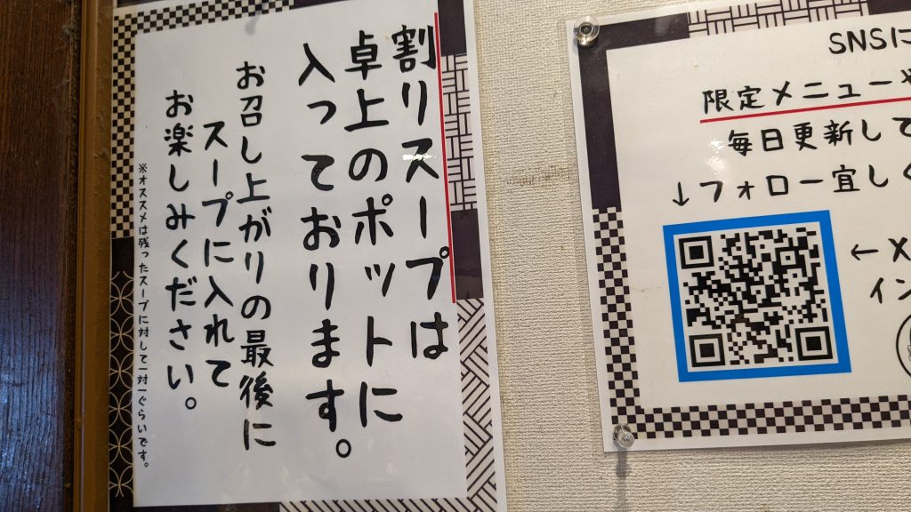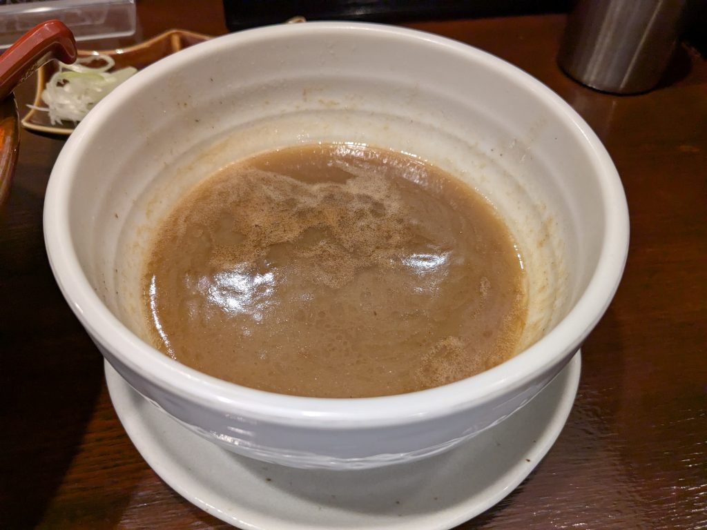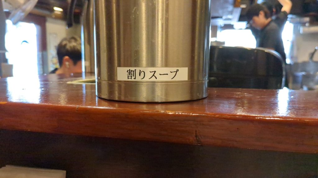 一気に完食し、カウンター上にある割りスープをつけ汁に入れて完飲。