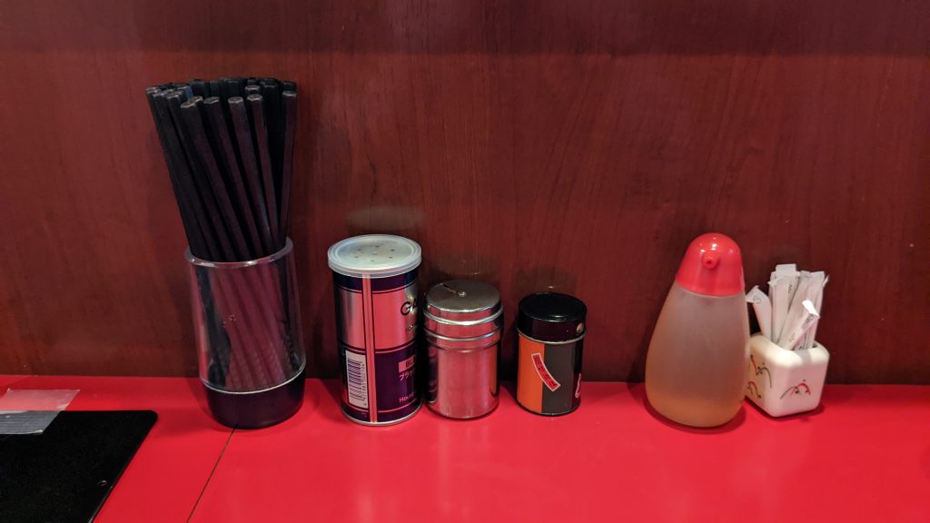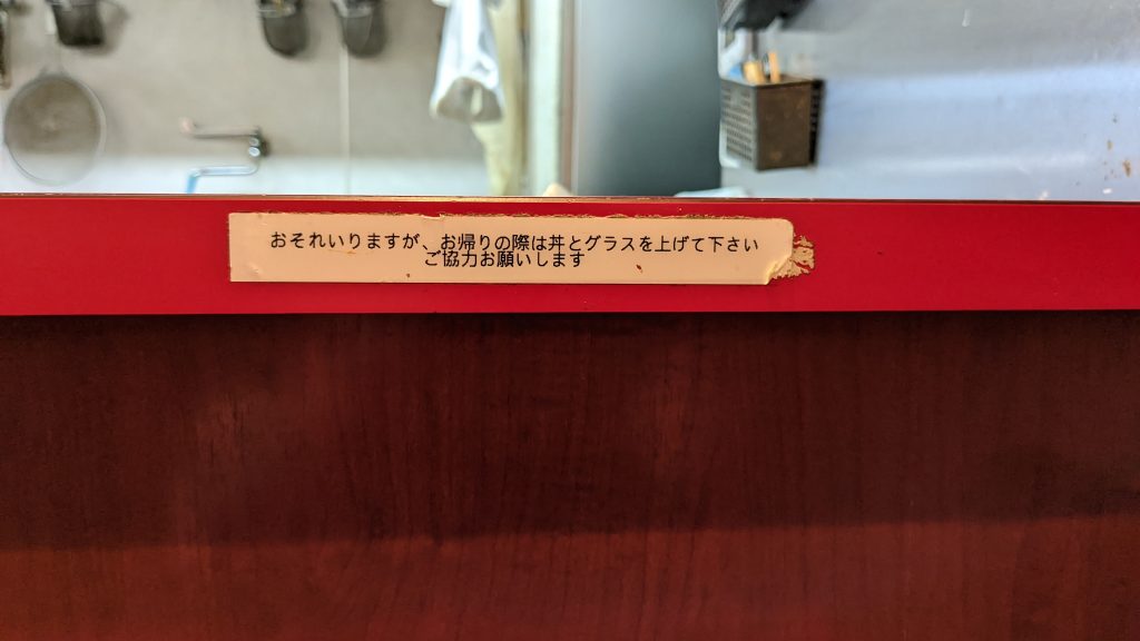 最後にスープ割を頼んで丼をカウンターに上げます。