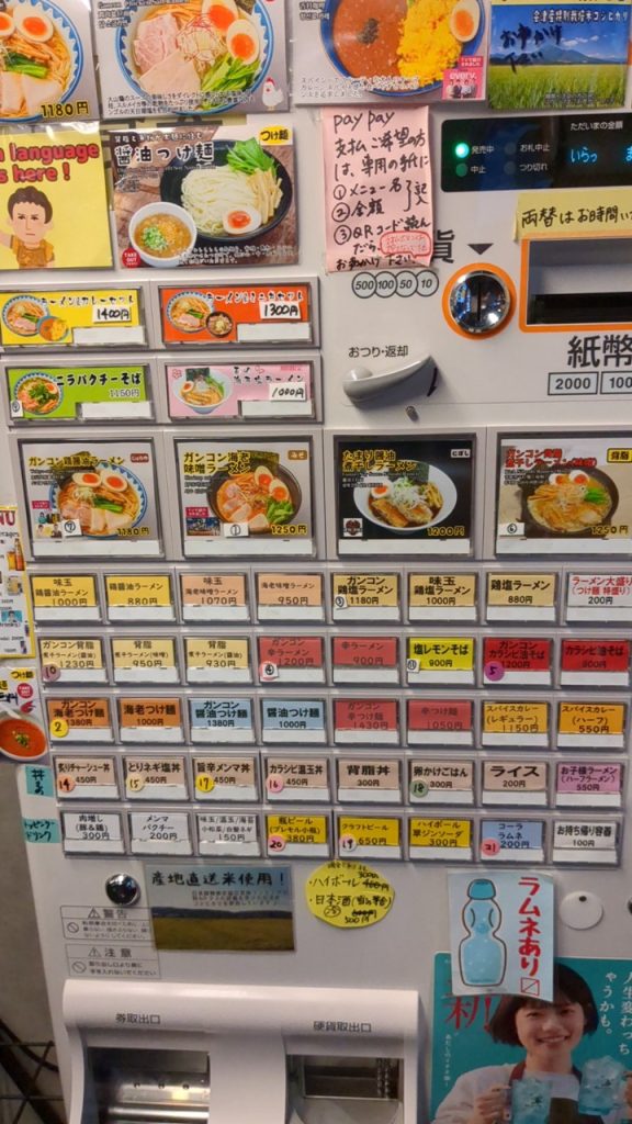 券売機には醤油、味噌、海老いろんなメニューがあります。