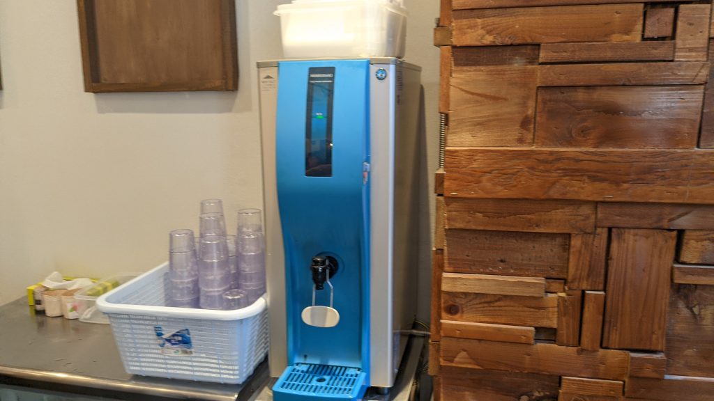 店内に入って水が飲めるみたいだけど、飲んだ後のコップどうするんだろう。