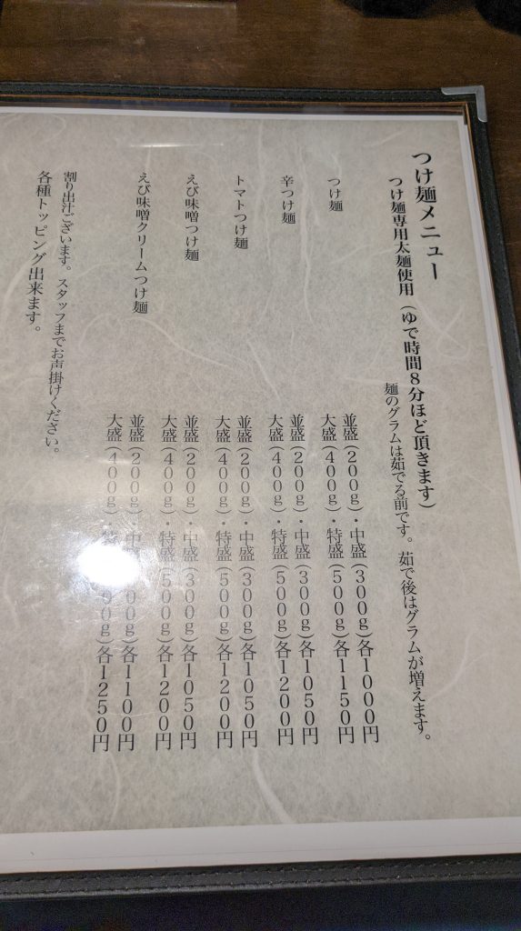 つけ麺(中)1000円を注文。