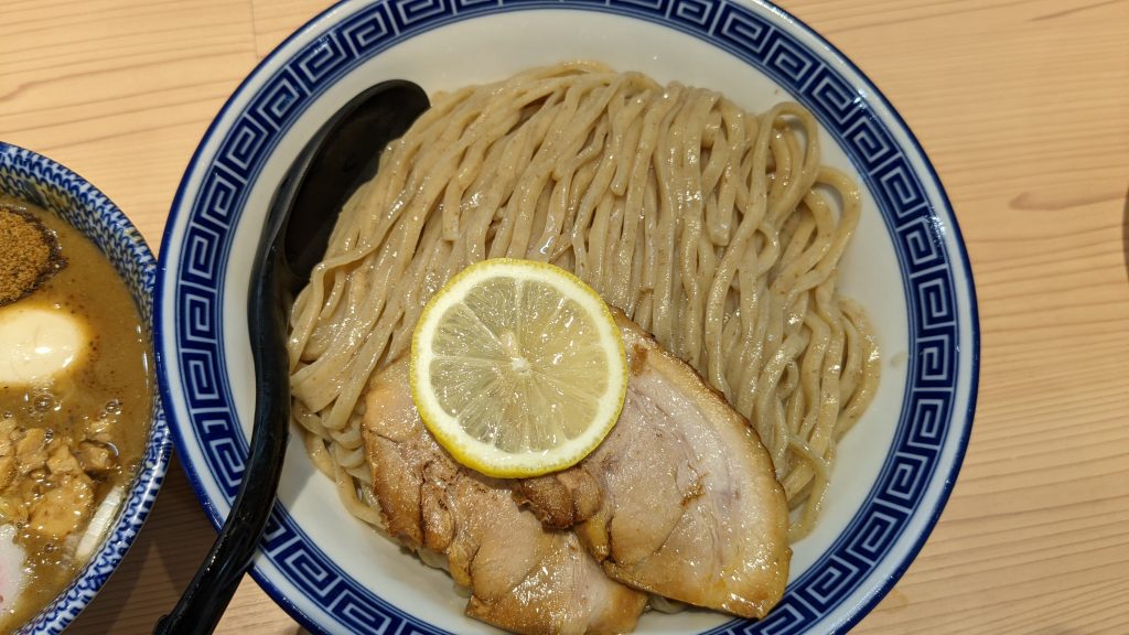 麺にチャーシュー2枚乗ってますが、つけ汁の中にももう1枚隠れてます。