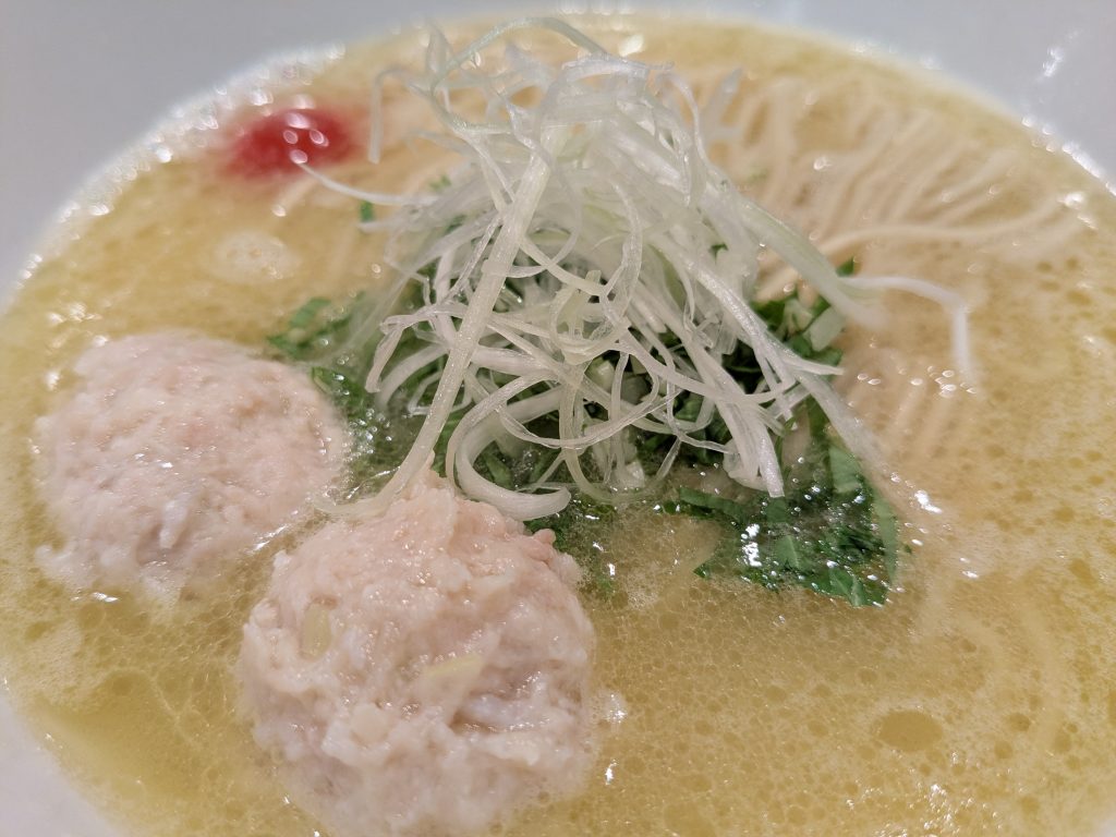 チャーシューはなく鶏つくね2個とプチトマトがのっていました。