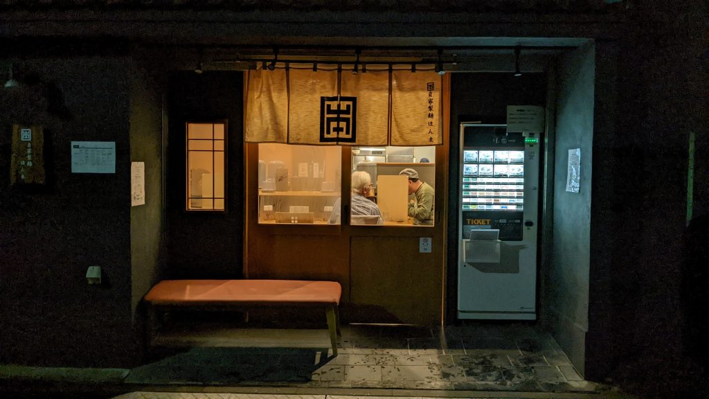 シャッターが開くと店の前に券売機。