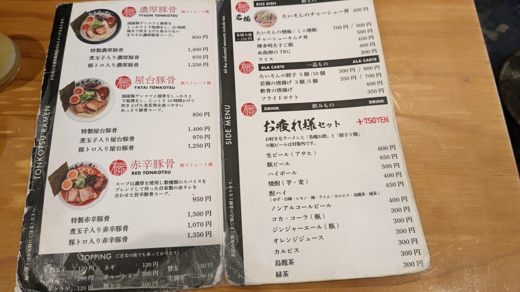 濃厚豚骨850円を口頭注文。