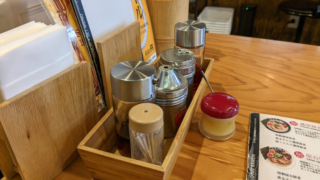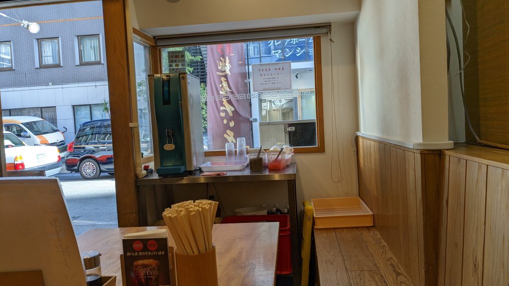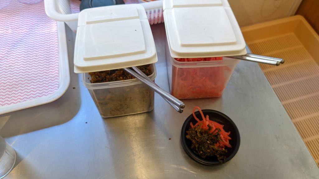 高菜、紅生姜も水の近くにあるので注文したら直ぐ取りにいきましょう。