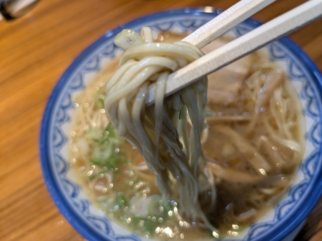 麺は細麺でするすると口の中に吸い込まれていきます。