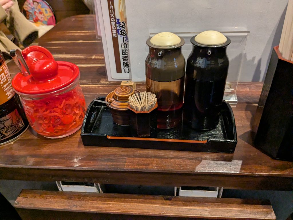 途中、ゴマやニンニク、紅生姜を入れて味変。
