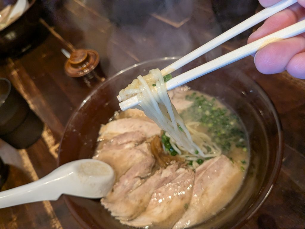 チャーシューは厚切りだけど柔らかくジューシーでした。