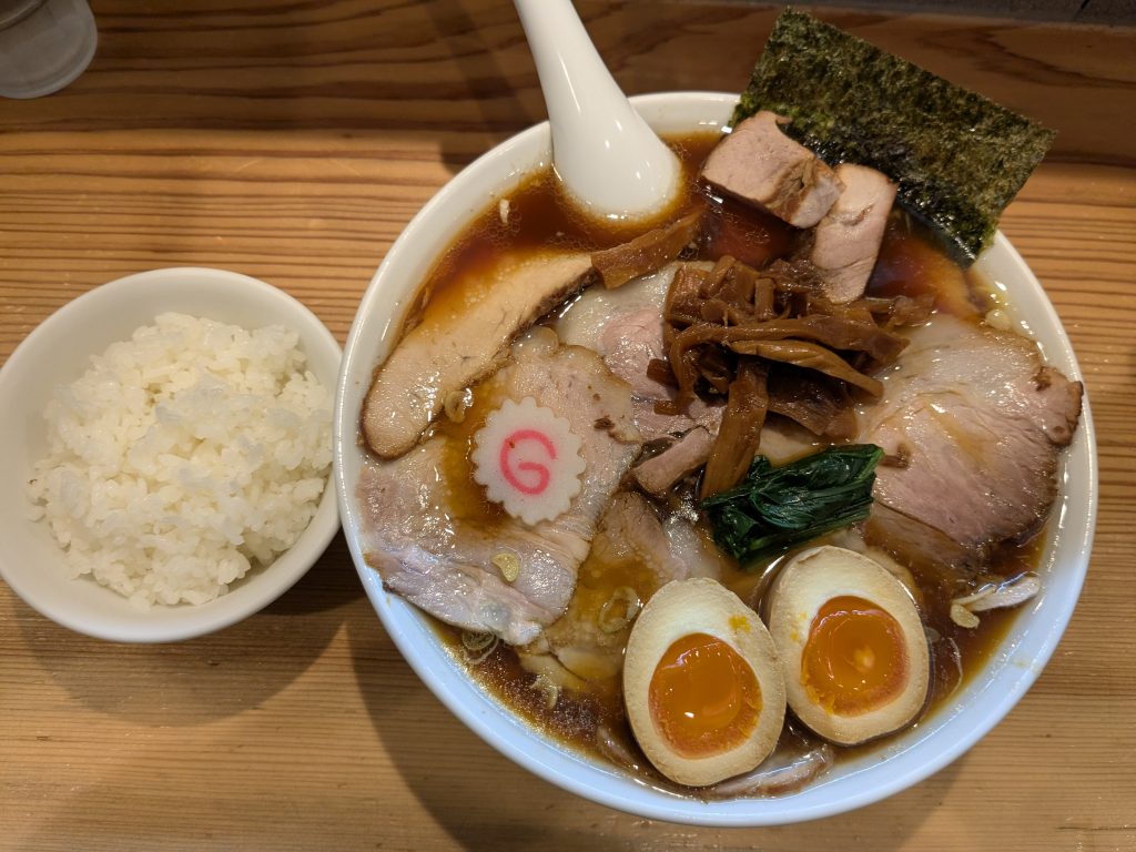 スープは生姜がたっぷり効いていて更に醤油がキリッと際立っていました。