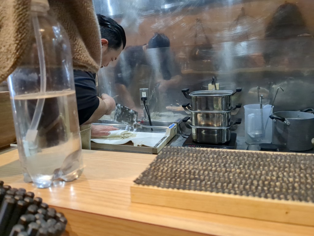 店主さんのワンオペで注文を受けてから麺を切っています。