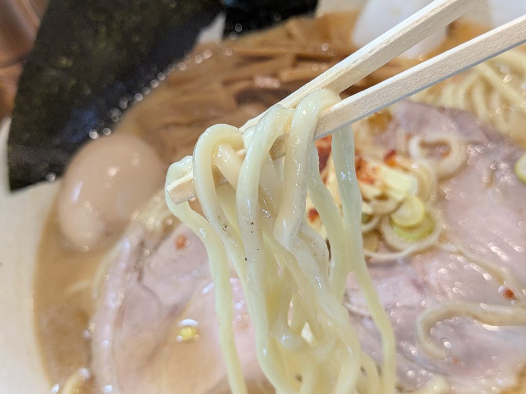 べんてん出身とのことで麺はかなり似ています。結構柔らか目。