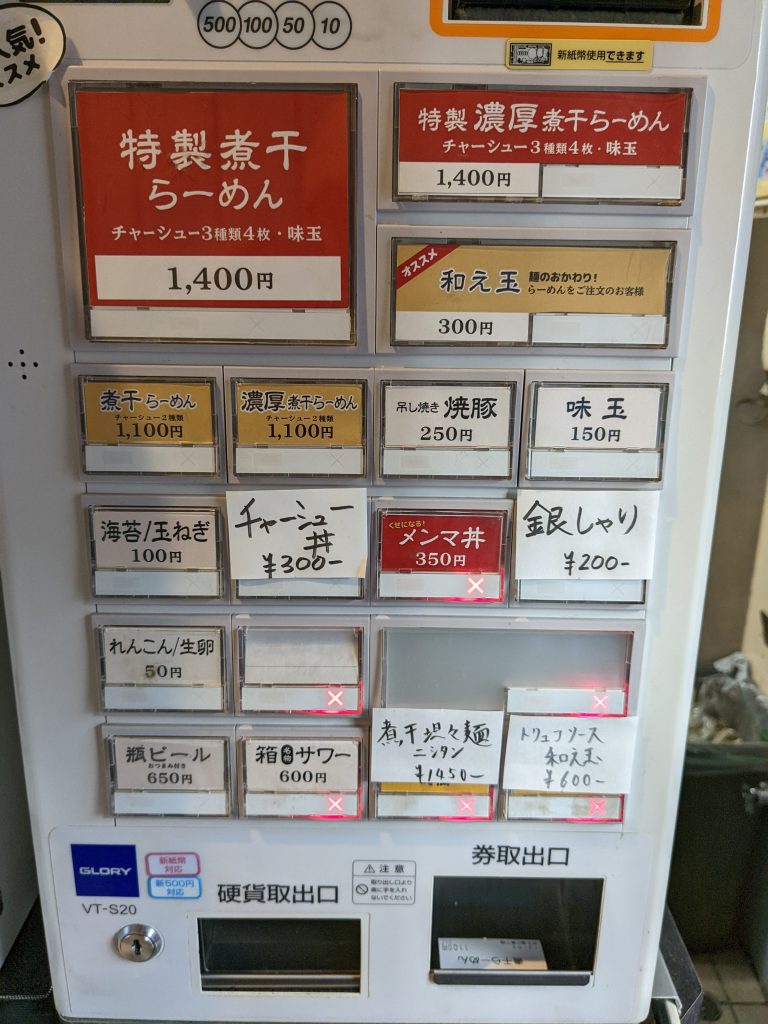 すぐに店内へ入り、券売機で「煮干しらーめん」(1100円)の食券を購入しました。