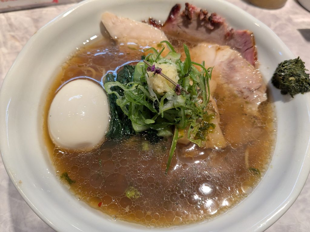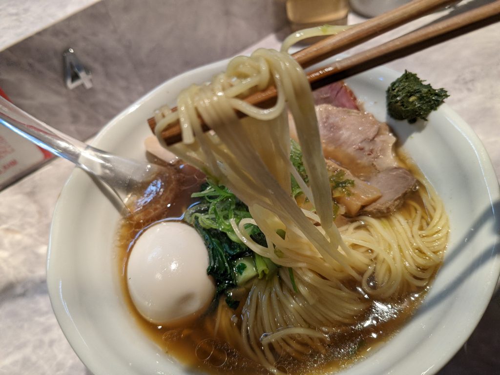 味玉、小松菜、メンマ、白髪ネギも申し分ない美味さ。