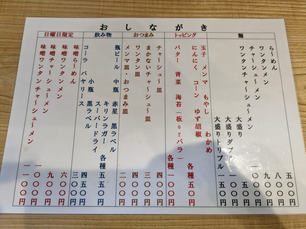 • ※日曜日限定で「味噌らーめん」の提供がある場合もあります。