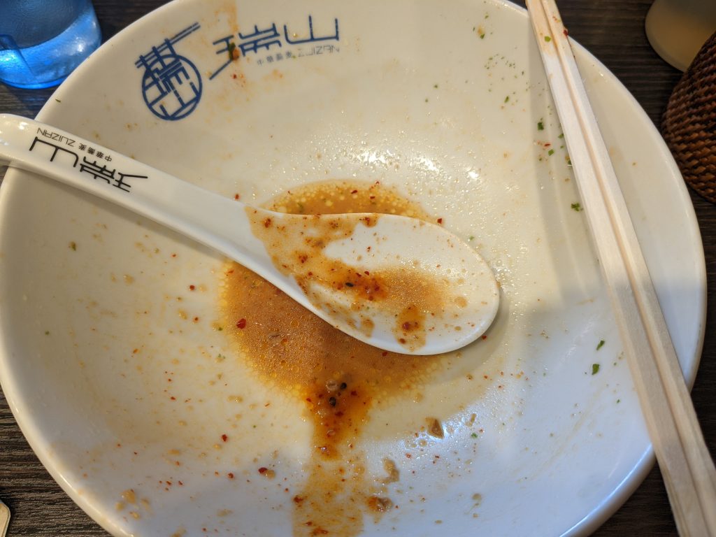 まずスープ。味噌だ、味噌汁っぽい味噌。